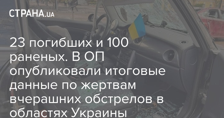 По данным областных военных администраций, жертвами вчерашнего массированного ракетного удара РФ по Украине стали 23 мирных жителя, еще 100 были ранены.