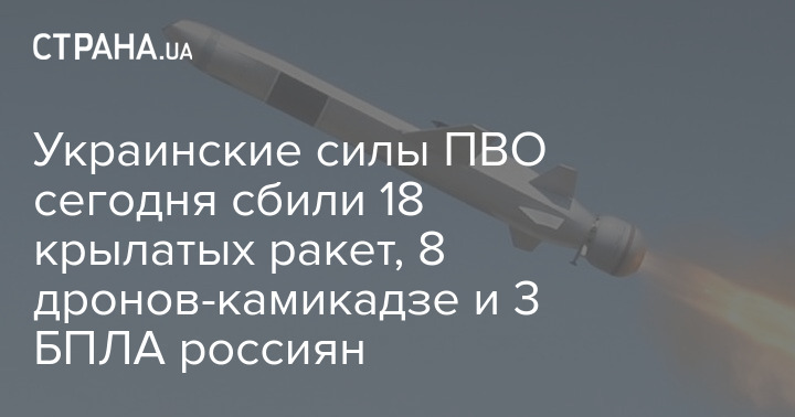 Украинские силы ПВО сегодня сбили 18 крылатых ракет, 8 дронов-камикадзе и 3 БПЛА россиян