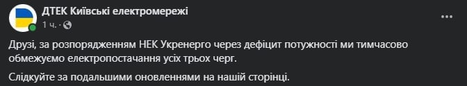 12 октября в Киеве из-за дефицита энергомощностей ДТЭК "Киевские электросети" снова отключают электроснабжение всех трех очередей потребителей.