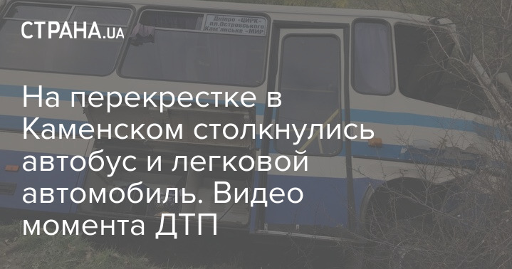 На перекрестке в Каменском столкнулись автобус и легковой автомобиль. Видео момента ДТП