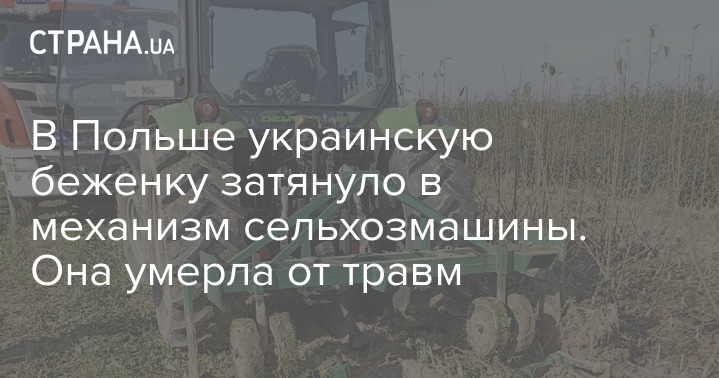 В Польше, в гмине (наименьшая административная единица страны) Коньсковола во время полевых работ произошел несчастный случай с украинской беженкой. 48-летняя украинка попала под трактор и погибла.