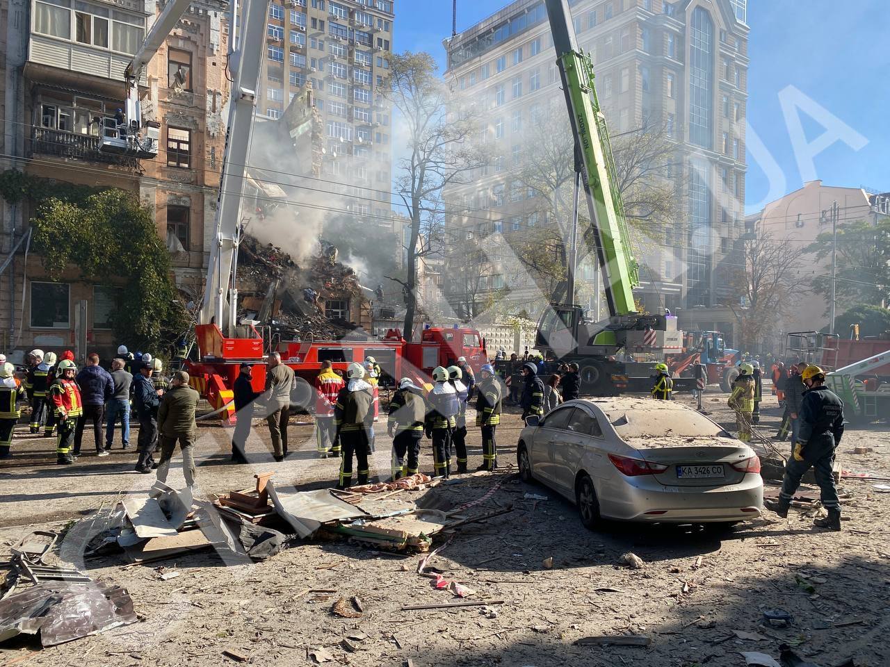 В Киеве удар пришелся на центр города, судя по всему - атаковали расположенный у жд-вокзала объект энергетики (его пытались, видимо, поразить и в прошлый раз).