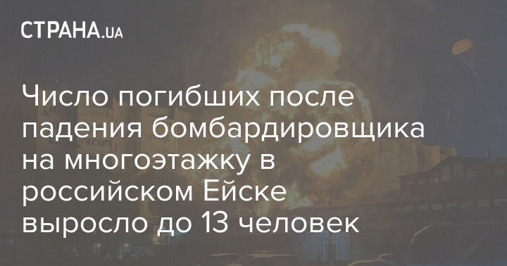 На месте крушения военного самолёта в Ейске (РФ) погибли 13 местных жителей, среди них трое детей.