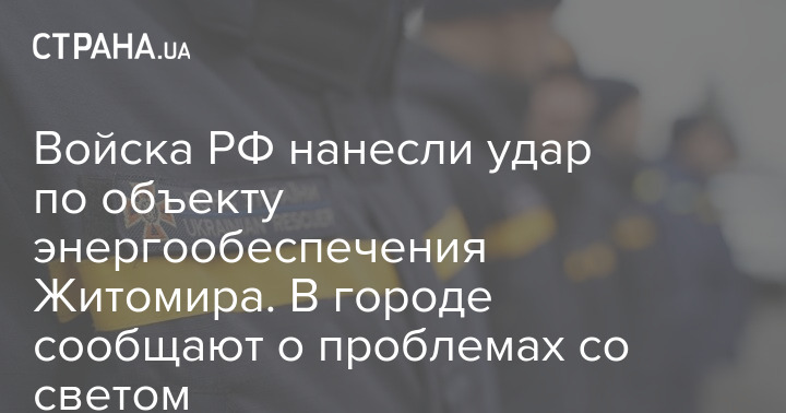 Войска РФ нанесли удар по объекту энергообеспечения Житомира. В городе сообщают о проблемах со светом