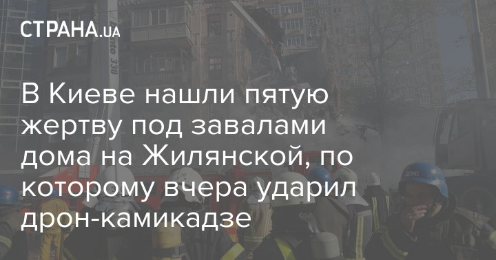 В Киеве из-под завалов дома на Жилянской, куда вчера утром ударил российский дрон-камикадзе, извлекли тело пожилой женщины. Это уже пятая жертва атаки.