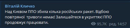 "ПВО продолжает работать", - добавил Виталий Кличко.
