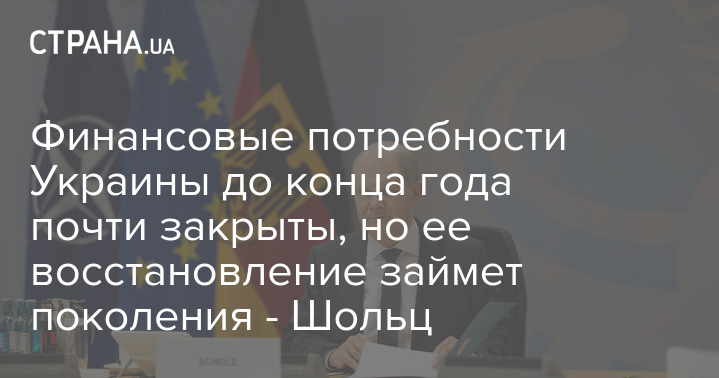 Канцлер Германии Олаф Шольц заявил, что финансовые потребности Украины до конца года практически удовлетворены, но ее восстановление станет "задачей поколений".