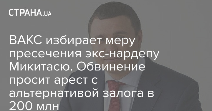 Сторона обвинения просит взять Микитася под стражу с альтернативой внесения залога в размере 200 миллионов гривен.