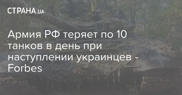 Россияне теряют в среднем по 10 танков в день при контрнаступлении украинцев, тогда как ВСУ лишаются всего по 2 танка за сутки, пишет Forbes.