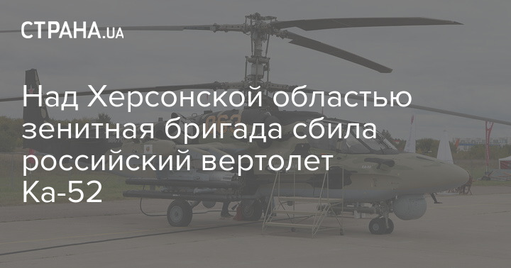 Спикер Одесской ОВА Сергей Бартчук сообщил о том, что в Бериславском районе Херсонской области около 17.00 был сбит российский ударный вертолет Ка-52
