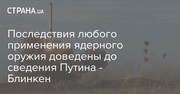Госсекретарь США Энтони Блинкен заявил о том, что последствия любого применения ядерного оружия были доведены до сведения президента России Владимира Путина