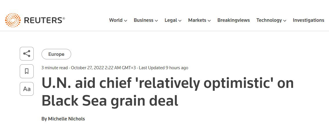 11.15 В ООН выражают оптимизм в отношении продолжения действия "зернового соглашения" и допускают привлечение к нему Николаевского порта.
