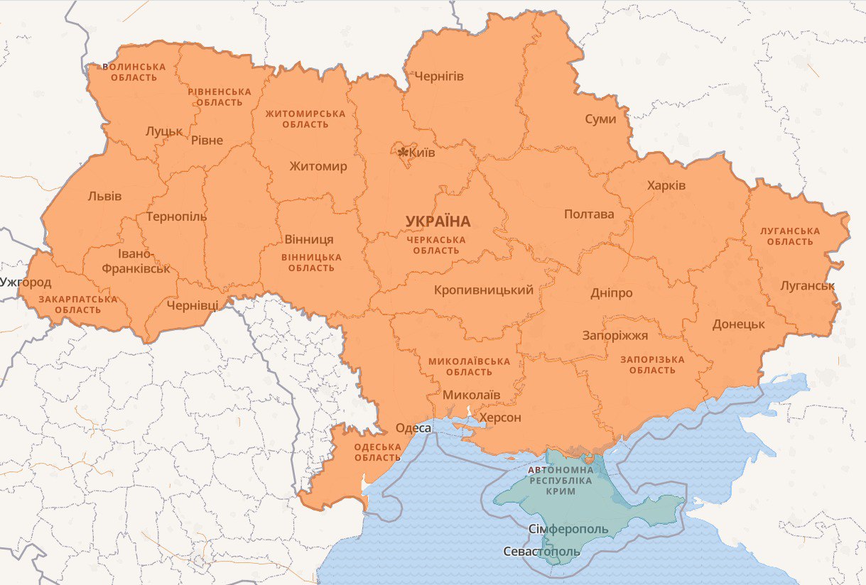 11.50 Снова воздушная тревога по всей стране, кроме Крыма.