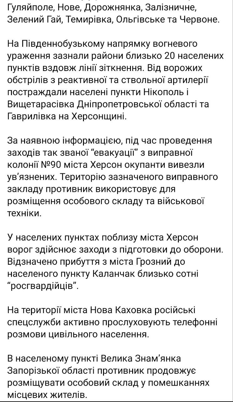 1.  Генштаб не сообщает о наземном наступлении россиян под Угледаром в Донецкой области (о чем вчера говорили в "ДНР" и подтвердил Арестович. Среди перечисленных населенных пунктов, которые подвергались атакам противника - Яковлевка, Бахмут, Бахмутское, Александрополь, Каменка, Авдеевка, Первомайское, Красногоровка, Марьинка и Новомихайловка (к северо-востоку от Угледара). Россияне вчера заявляли, что подошли вплотную к Павловке, которая прикрывает Угледар с юга.