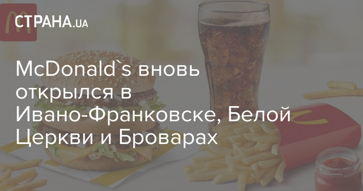 В среду заново открылся McDonald's в Ивано-Франковске (ул.И.Миколайчука, 2), а также два ресторана в Киевской области: в Белой Церкви (просп. Независимости) и в Броварах (ул.Киевская, 239).
