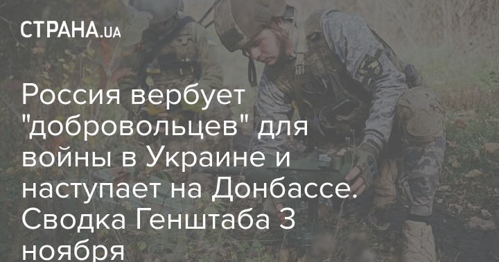 В Генеральном штабе Вооруженных сил Украины опубликовали оперативную сводку с фронта по состоянию на 18:00 3 ноября. Сообщается, что российские войска наступают на Донбассе и набирают "добровольцев" для участия в войне.
