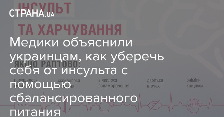 Пресс-служба Центра общественного здоровья Украины написала о том, что полноценное сбалансированное питание играет эффективную роль в профилактике и контроле риска инсульта