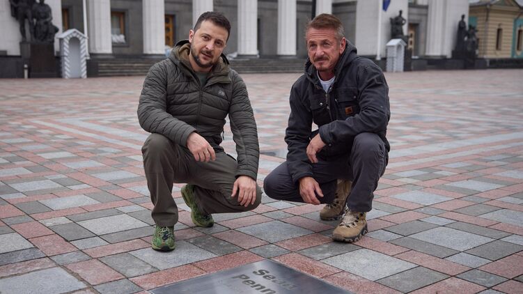 Президент добавил фоторепортаж о посещении с Пенном Аллеи смелости – места по типу голливудской Аллеи славы, где между тротуарными плитками будут вмонтированы таблички с именами многих мировых лидеров, которые помогли Украине во время войны. Первой из них стала именная табличка Шона Пенна.