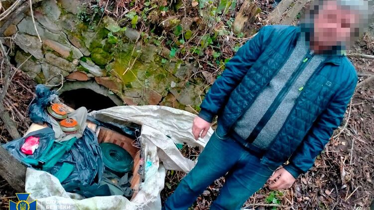 Диверсантов задержали когда они забирали оружие из заранее обустроенного тайника в Сумской области. В тайнике обнаружили противотанковые мины ТМ-62М, гранаты РГО, автомат Калашникова.