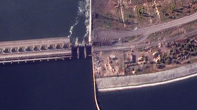 Спутниковые снимки показали новые повреждения на дамбе Каховской ГЭС