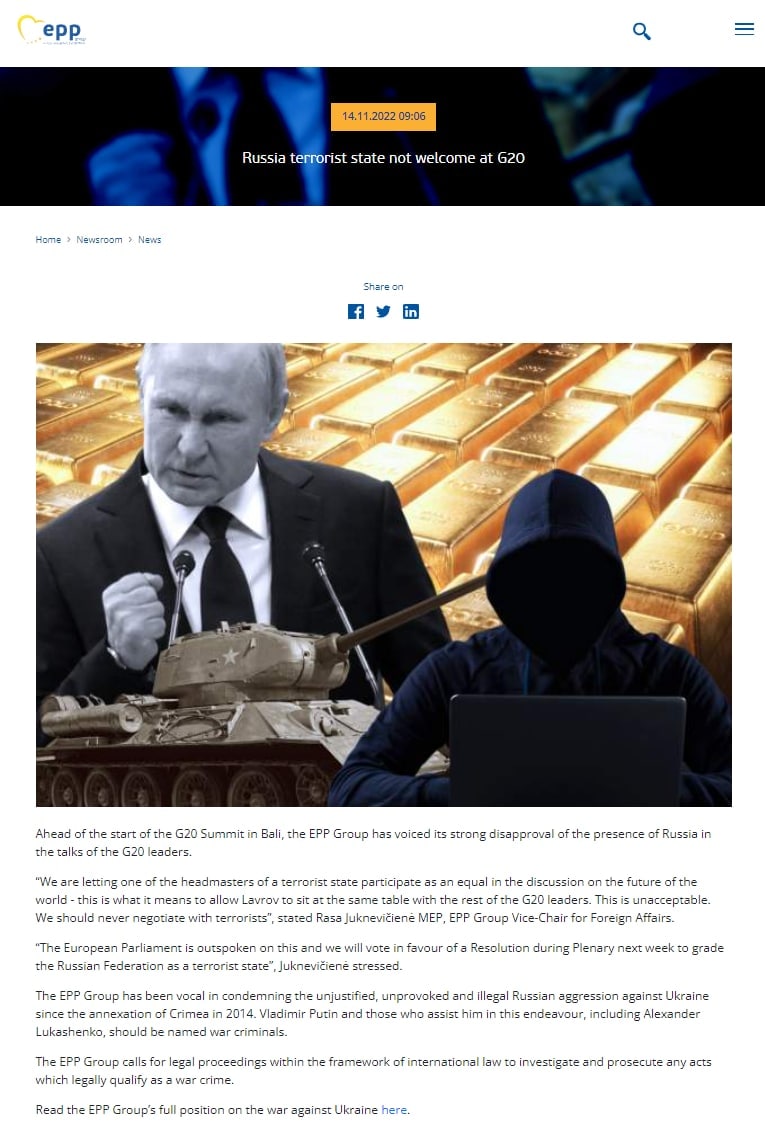 13.41 Европарламент планирует провести голосование по резолюции об объявлении России страной-террористом, говорится на сайте Европейской народной партии.
