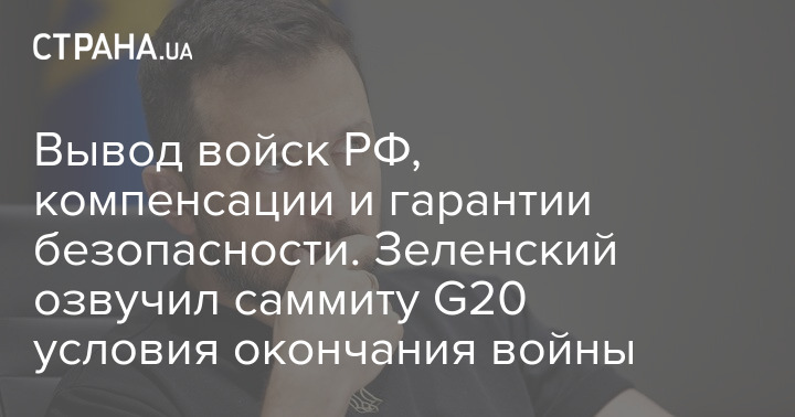 Вывод войск РФ, компенсации и гарантии безопасности. Зеленский озвучил саммиту G20 условия окончания войны