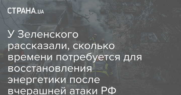 У Зеленского рассказали, сколько времени потребуется для восстановления энергетики после вчерашней атаки РФ