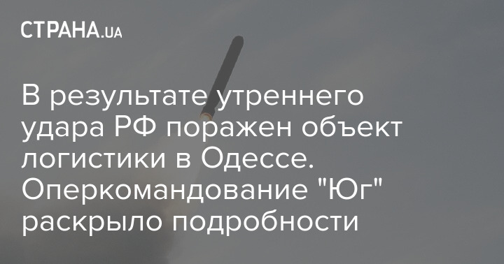 В результате утреннего удара РФ поражен объект логистики в Одессе. Оперкомандование "Юг" раскрыло подробности
