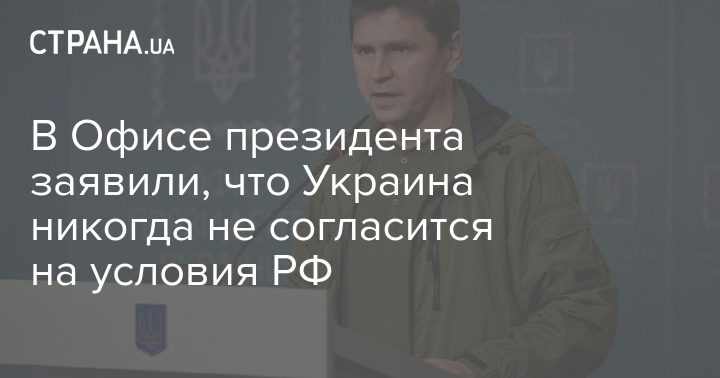Советник главы Офиса президента Михаил Подоляк вслед за Владимиром Зеленским заявил, что Украина, несмотря на любые уговоры извне, никогда не согласится на условия россиян.