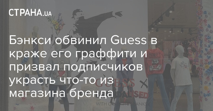 Британский анонимный уличный художник Бэнкси, который на днях нарисовать семь граффити в Киеве и Киевской области, призвал магазинных воров украсть что‑то из бутиков американского бренда Guess.