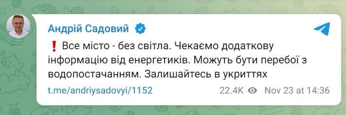 23:43 Ситуация в энергосистеме крайне сложна, пишет исполнительный директор ДТЭК Дмитрий Сахарук.