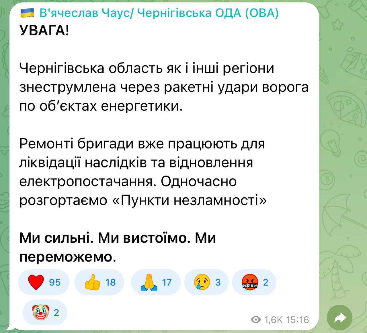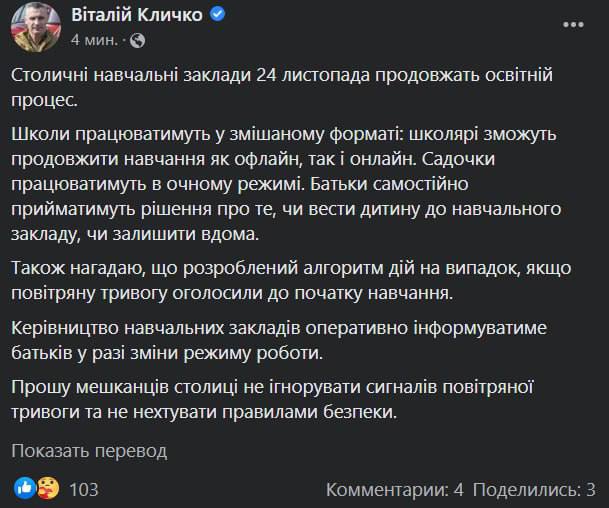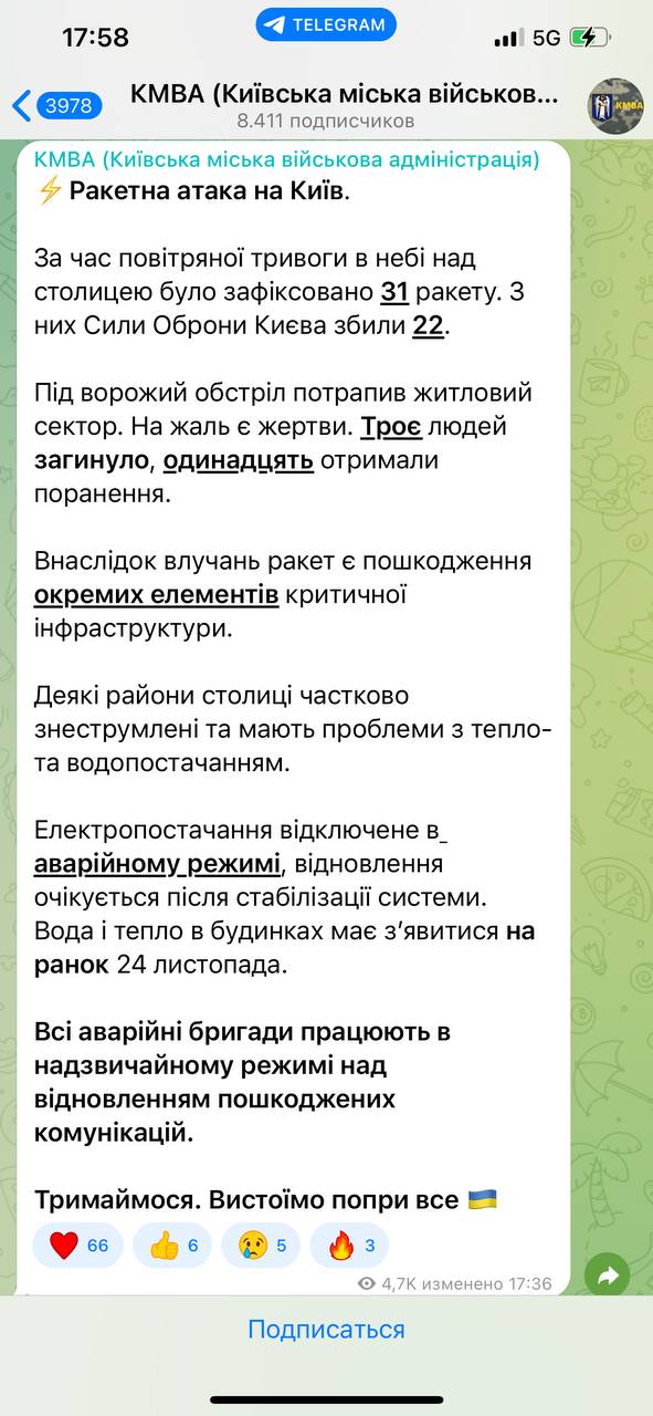 21:12 Украинская энергосистема заработает в ближайшие 24 часа.