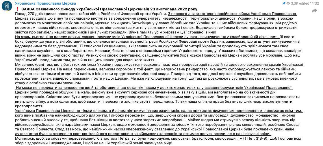 "В ответ на вчерашний комментарий Пескова на церковную тему, хотел бы заметить, что УПЦ такая же "Русская Церковь", как Херсон - "субъект" РФ", - прокомментировал слова Пескова заместитель председателя Отдела внешних церковных связей УПЦ Николай Данилевич.