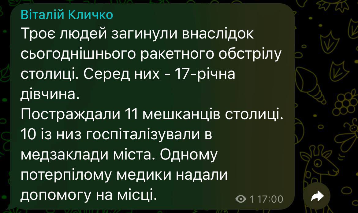 13.00 Воздушная тревога добралась до Киева.