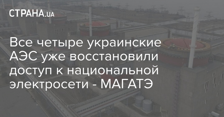 Все четыре украинские АЭС уже восстановили доступ к национальной электросети - МАГАТЭ