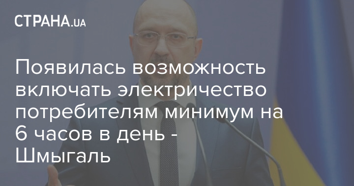 Премьер-министр Украины Денис Шмыгаль заявил, что при нынешних объёма дефицита в энергосистеме (30%) есть возможность равномерно распределить потребление электроэнергии между бытовыми потребителями, чтоб им включали свет на, как минимум, 5-6 часов в день.