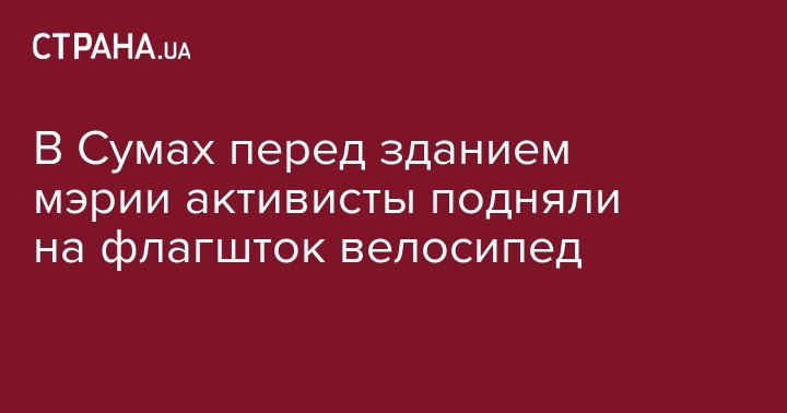 В Сумах перед зданием мэрии активисты подняли на флагшток велосипед
