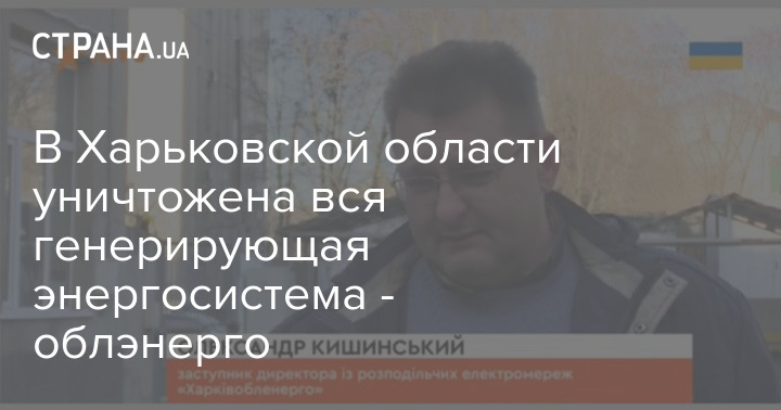 В результате российских ударов в Харьковской области уничтожена вся генерирующая энергосистема.