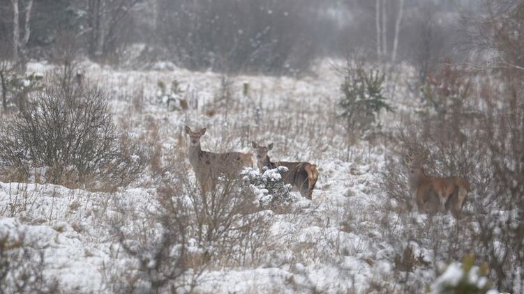 Чернобыльский заповедник опубликовал фото благородных оленей в снегу зоны отчуждения