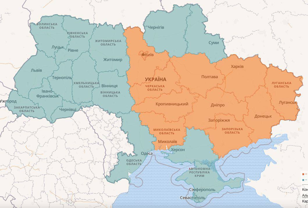 12:43 Карта воздушных тревог сейчас выглядит так.