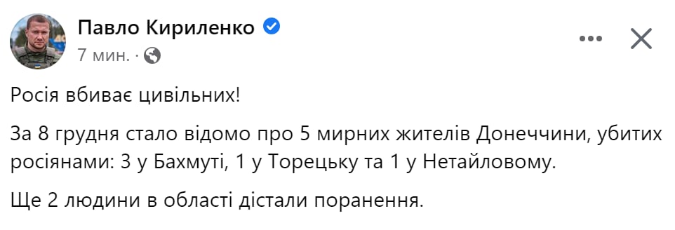 В пятницу, 9 декабря, в Украине идет уже 289-й день войны с РФ.