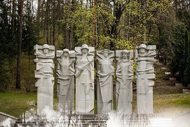 Мемориал советским воинам на Антакальнисском кладбище создан в 1951 году. В 1984 году там установили шесть стел, которые изображают бойцов разных родов войск.