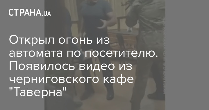 В социальных сетях распространяется видео из черниговского кафе "Таверна", где одетый в военную форму автоматчик стреляет в разбушевавшегося посетителя.