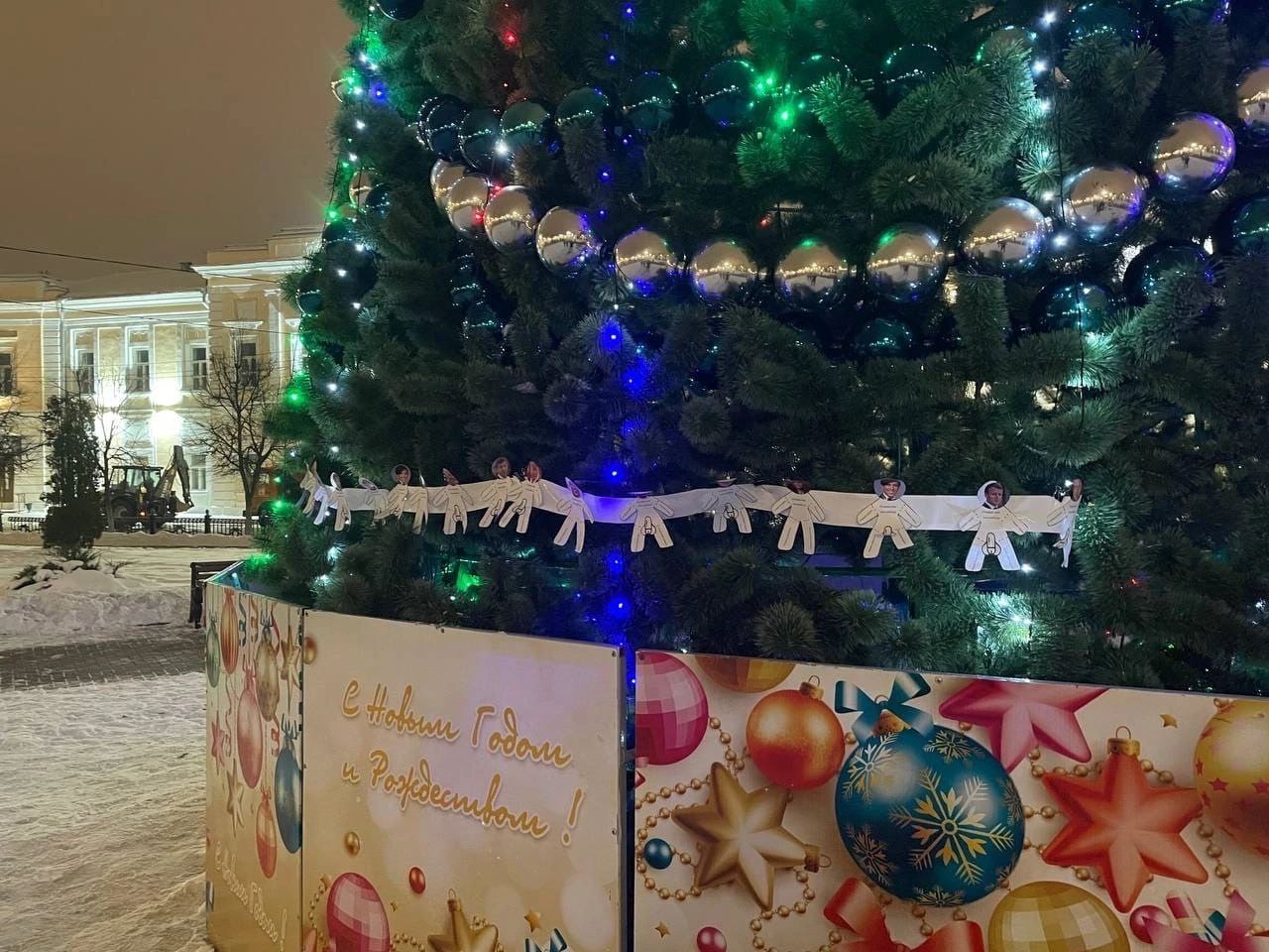 На новогоднюю елку в центре Твери повесили гирлянду с изображением Зеленского. Фото
