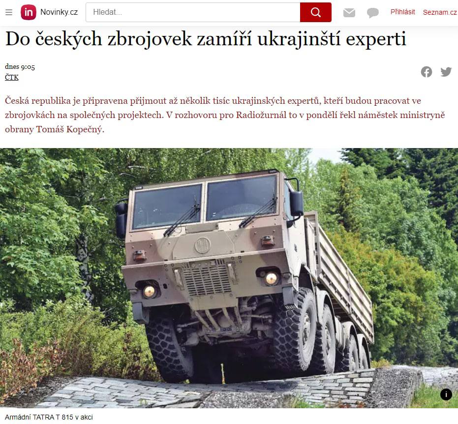 "Например, в Tatra из холдинга Czechoslovak Group не хватает 500 человек. Так что рабочих мест будет тысячи. Это зависит от того, насколько увеличатся производственные мощности чешских компаний, или производства совместных чешско-украинских оружейных заводов", - сказал он.