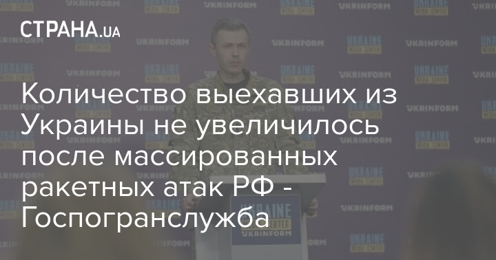 Государственная пограничная служба Украины не зафиксировала увеличение количества выехавших за границу людей после массированных ракетных ударов РФ, также нет очередей легковых транспортных средств.