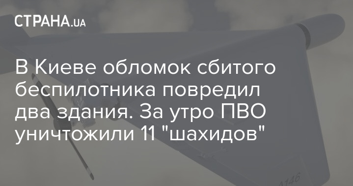 В Киеве обломок сбитого беспилотника повредил два здания. За утро ПВО уничтожили 11 "шахидов"