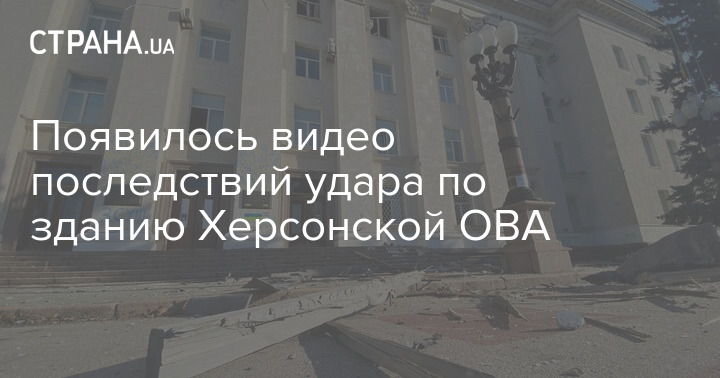 Местные власти публикуют видео повреждений здания Херсонской ОВА в результате сегодняшней атаки российских войск из РСЗО.