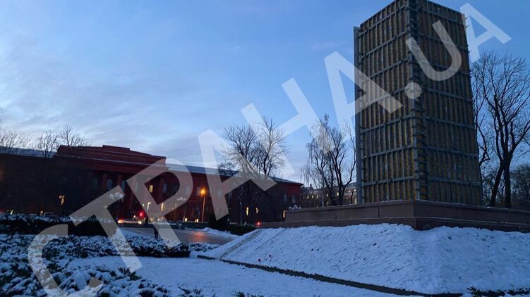 А памятник Тарасу Шевченко по-прежнему закрыт специальной конструкцией на случай ракетного удара.