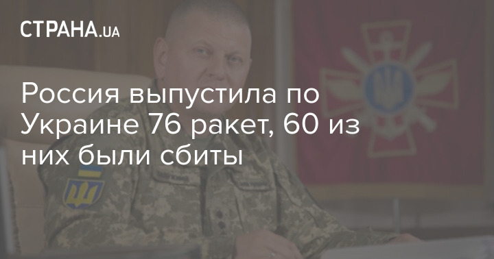 Силами и средствами зенитных ракетных войск Воздушных Сил и противовоздушной обороны Сухопутных Войск уничтожены 60 вражеских ракет", - заявил Залужный.